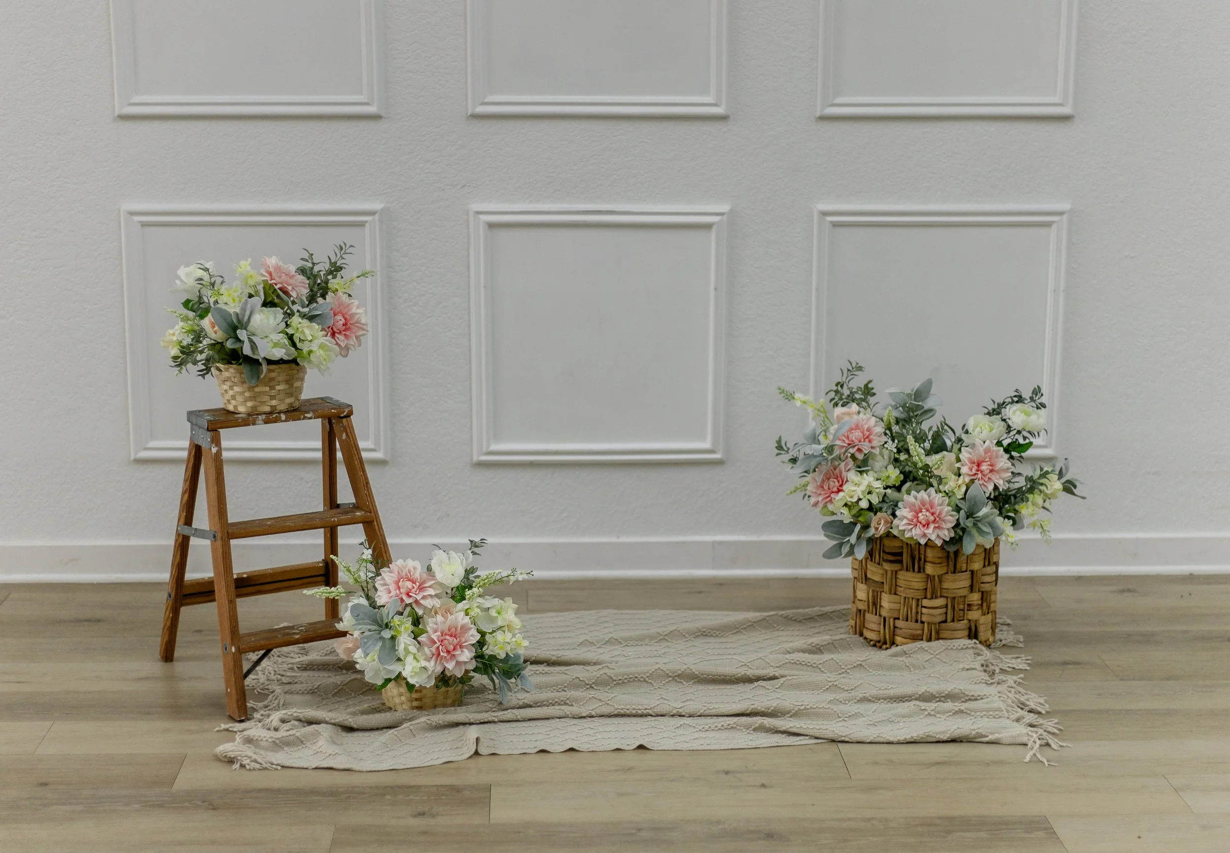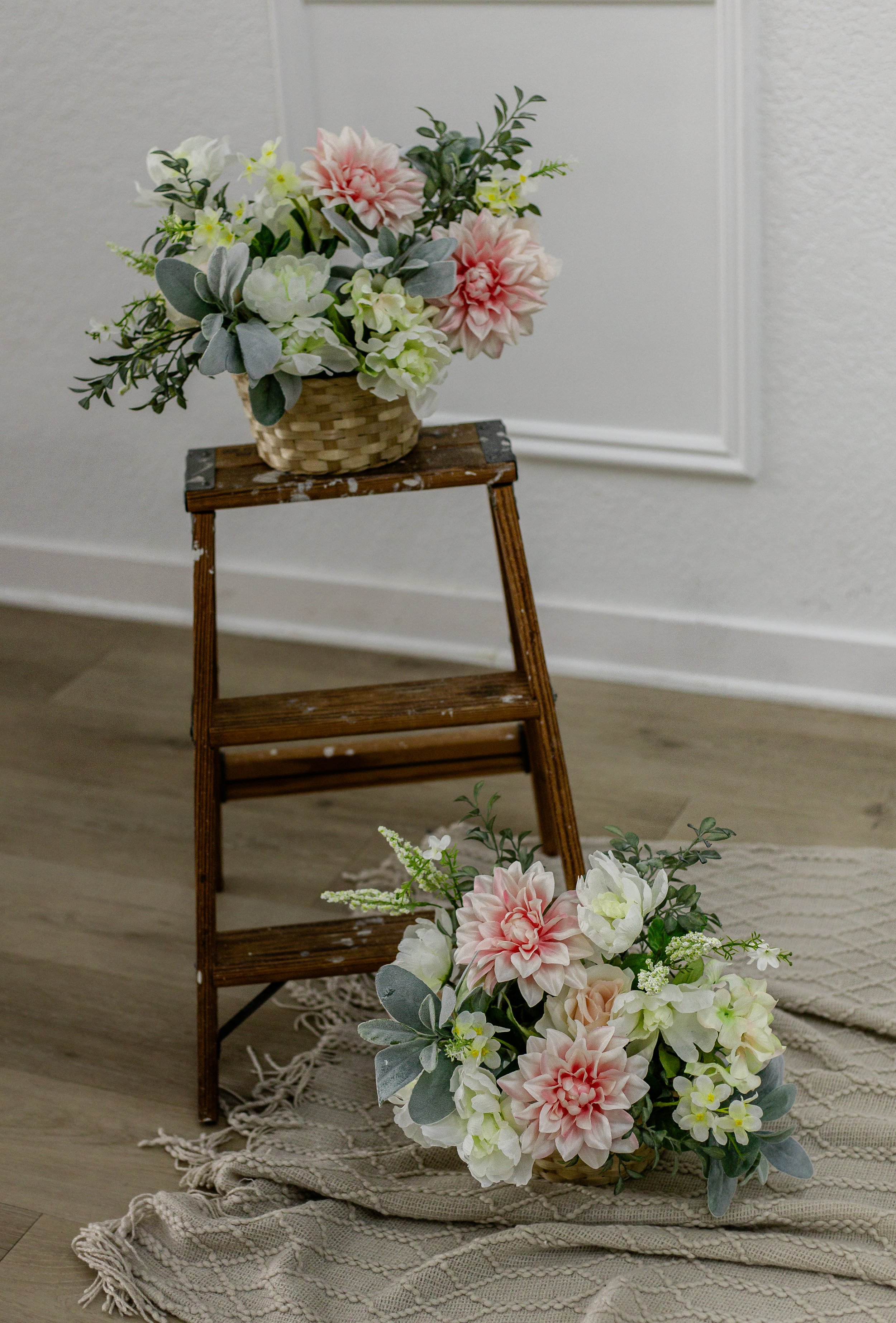 Step ladder with flowers.